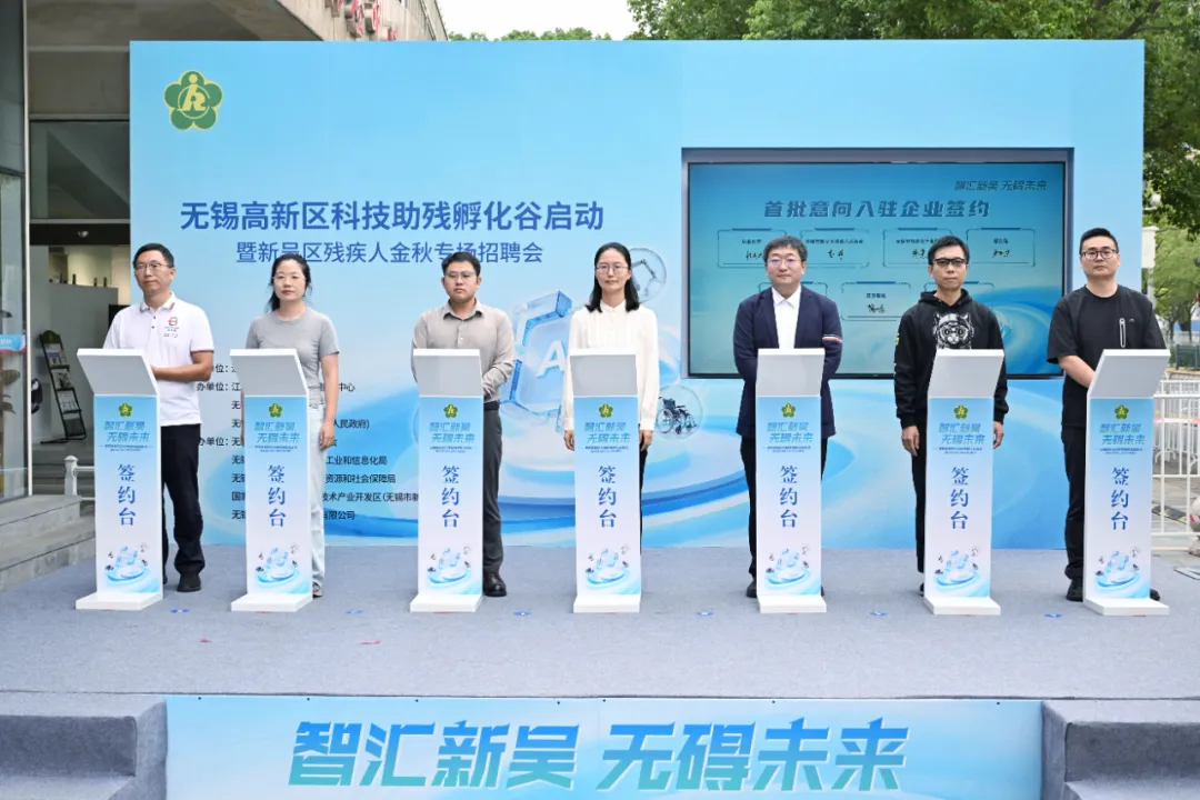 首批意向入驻无锡高新区科技助残孵化谷的企业执鼎医疗科技、爱跑猫科技、跑吧智能科技、荟源有福信息技术、易思脑健康科技签约。