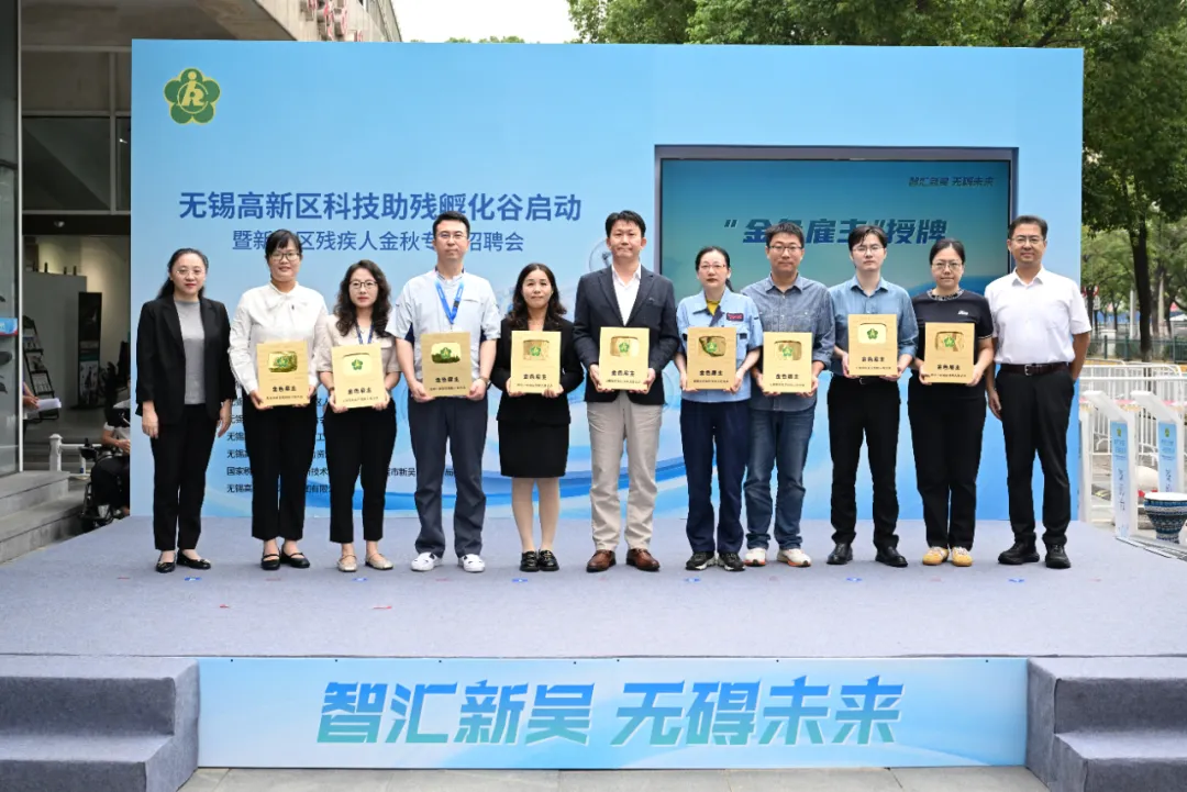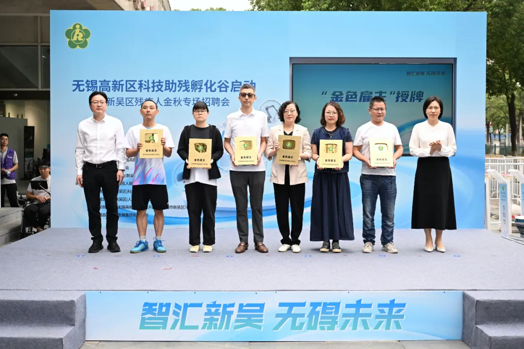 活动现场为江苏亚太轻合金科技股份有限公司、索尼数字产品(无锡)有限公司等15家在残疾人正规就业、辅助性就业领域作出突出贡献的“金色雇主”企业授牌。这些企业以用行动托举“无碍未来”,让“残健共融”的理念在无锡高新区(新吴区)落地生根、开花结果。