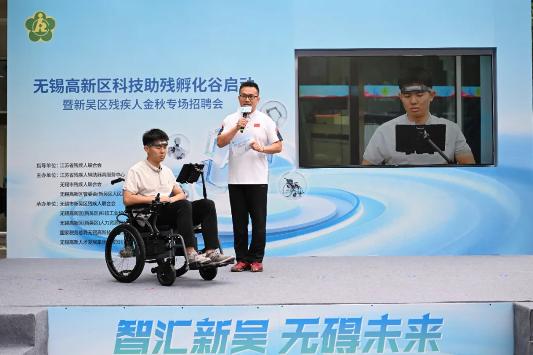 10月14日,“智汇新吴 无碍未来”——无锡高新区科技助残孵化谷启动暨新吴区残疾人金秋专场招聘会活动举行。省残联党组成员、副理事长杜晓镇,无锡高新区党工委书记、区委书记崔荣国,市残联党组书记、理事长周皖红,江南大学医学院副院长兼江大附属医院副院长、农工党无锡市委副主委赵鹏,区领导孙磊、李桂林共同启动无锡高新区科技助残孵化谷。